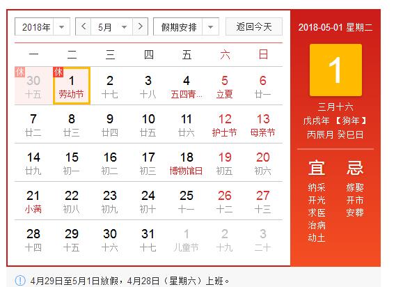 一、放假時間4月29日至5月1日(星期日至星期二)放假,共3天,4月28日(星期六)正常上班。